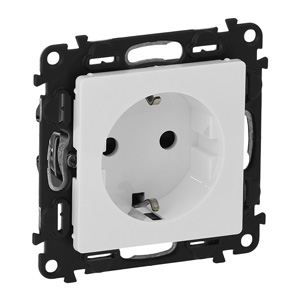 Valena Life 2P+F csatlakozóaljzat felújításokhoz (6mm2-es csavaros vezetékbekötéssel), gyermekvédelemmel fehér